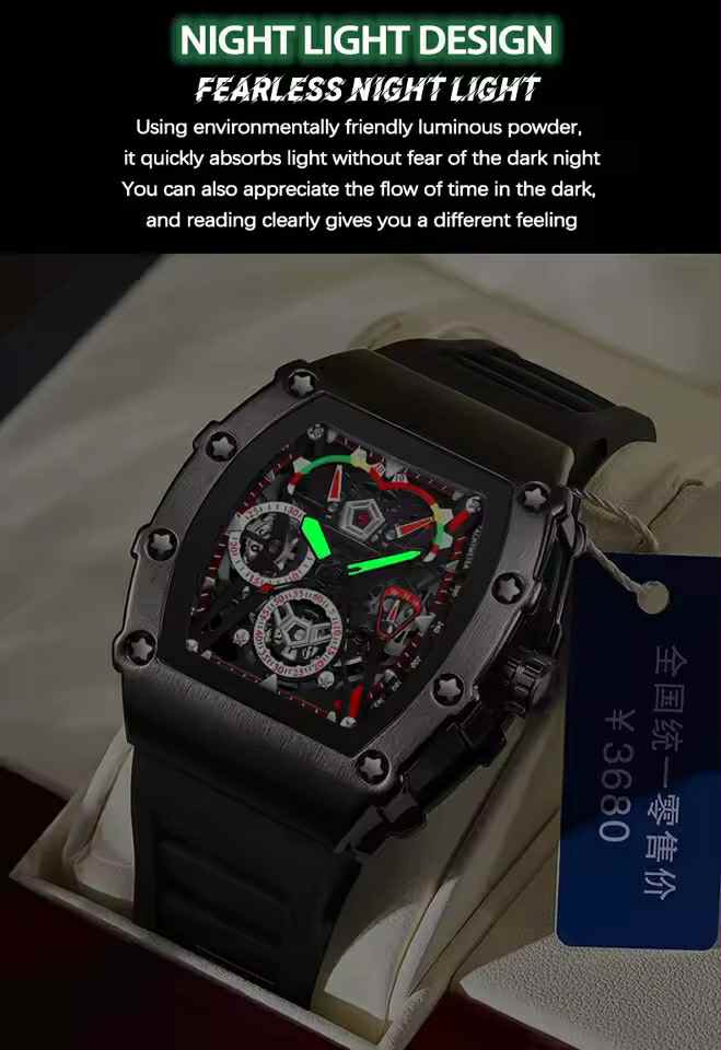 Discover our newest men’s watch—crafted with a waterproof build, night light display, calendar function, and a comfortable silicone strap. A perfect companion for every occasion.